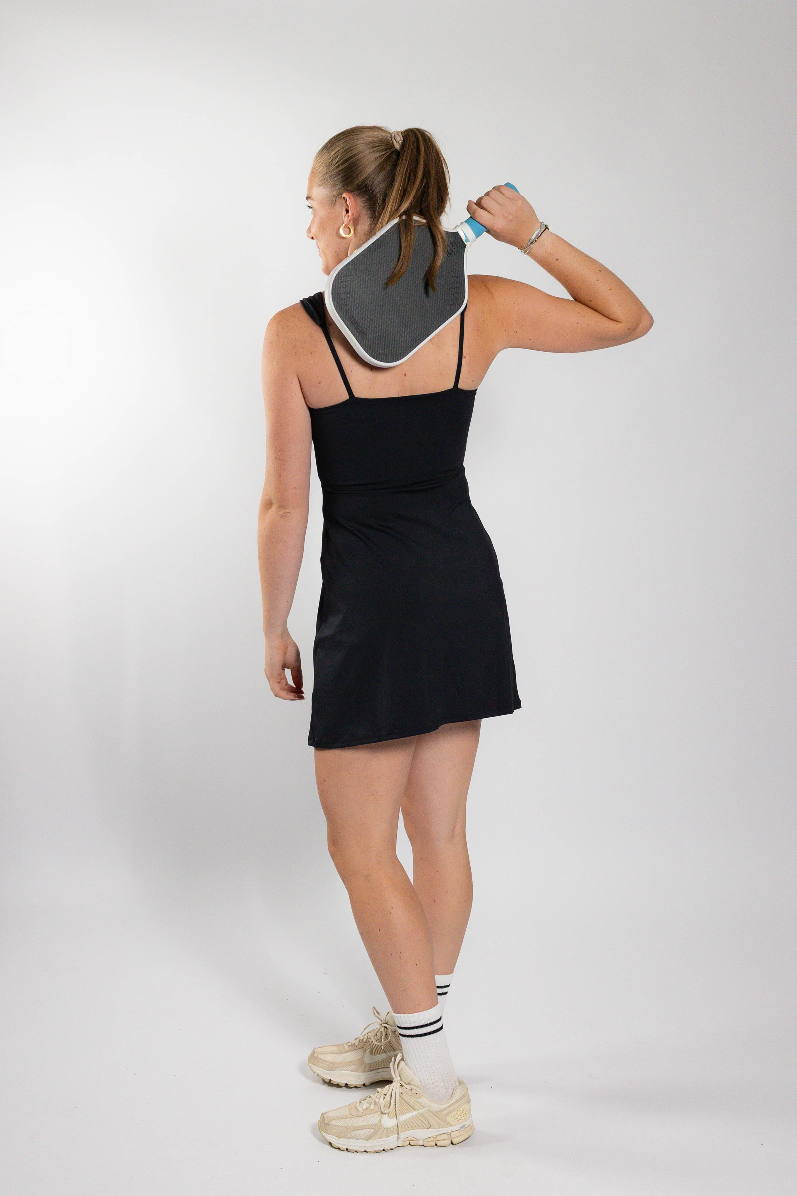 De Luxury Dress combineert een vrouwelijke pasvorm met een elegante halslijn en verfijnde bandjes die van breed naar spaghetti lopen. De geïntegreerde sport-bh biedt lichte ondersteuning, en de jurk wordt geleverd met een los, bijpassend broekje – een perfecte mix van stijl en comfort. Dit model is 169 cm lang en draagt maat S. Kies voor een strakke fit je huidige maat, kies voor een losse fit een maatje groter.