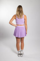 De Elegance Two-Piece bestaat uit een aangesloten top met geïntegreerde sport-bh en een hoog aansluitend plissé rokje met ingebouwd broekje en zakje. Gemaakt van ademend en licht materiaal voor een elegante, vrouwelijke look met sportieve functionaliteit. Dit model is 159/178 cm lang en draagt maat S/M. Kies voor een strakke fit je huidige maat, kies voor een losse fit een maatje groter.