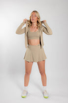De Excellence Set three-piece van OTC (On The Court) bestaat uit top, skirt en jacket – een complete sportoutfit voor dames. Stijlvol en functioneel bij padel, tennis en pickleball, indoor én outdoor.